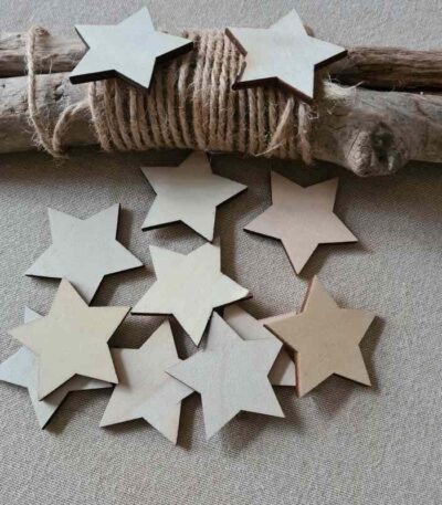 Rico Design – Étoiles en bois grandes, nature, 45x42mm, 12pcs