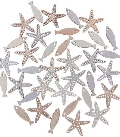 Rico design – Déco poisson & étoile de mer mixe, nature, bois, 36 pcs