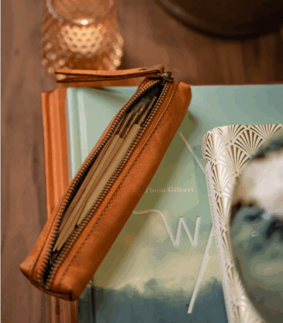 Muud – Trousse rangement tricot /crochet en cuir véritable couleur Cognac