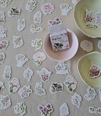 AX – Mini Boite 46 stickers autocollants Jardin rose