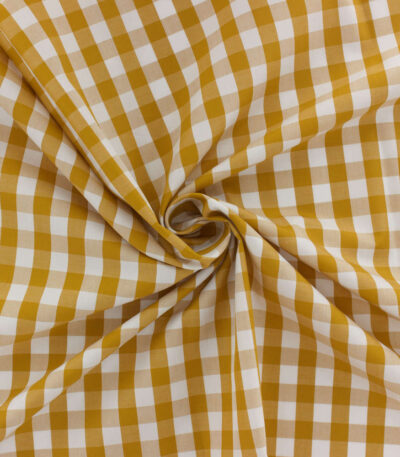 COM – Tissu popeline de coton , Vichy grands carreaux col Safran