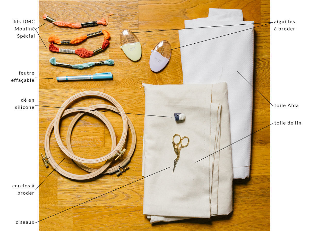 Si vous choisissez une toile de lin ou étamine on parle alors en nombre de fils : par exemple sur une toile de lin 12 fils, il y a 12 fils par centimètre et donc si vous brodez votre point sur 2 fils de trame, cela correspond à la moitié du nombre de fils indiqués, donc 6 points. Sur ce type de toile vous pouvez également broder du petit point c’est à dire sur 1 fil de trame. Dans ce cas de figure, vous aurez donc 12 points par centimètre.