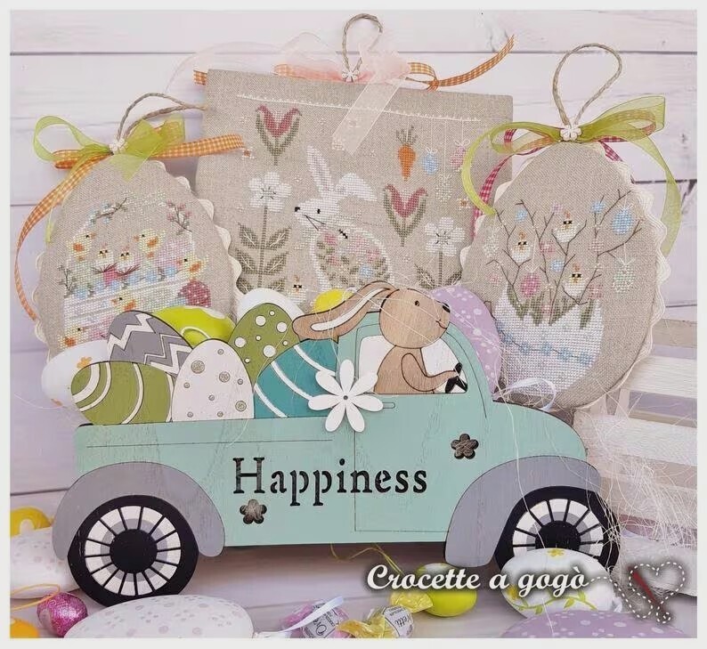 Lapin 101×103- panier poussins 58×66 – arbre de pâques 59×76