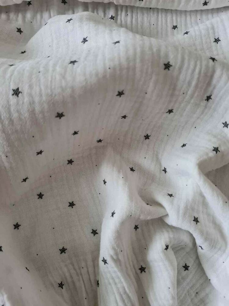 Gots – Double gaze de coton GOTS imprimé Etoiles Gris anthracite