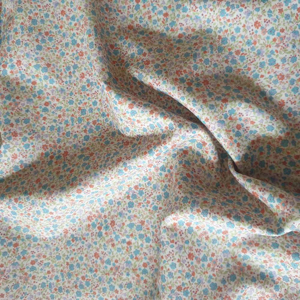 Gots – Voile de coton Fleuri Bleu et Orange Réf28