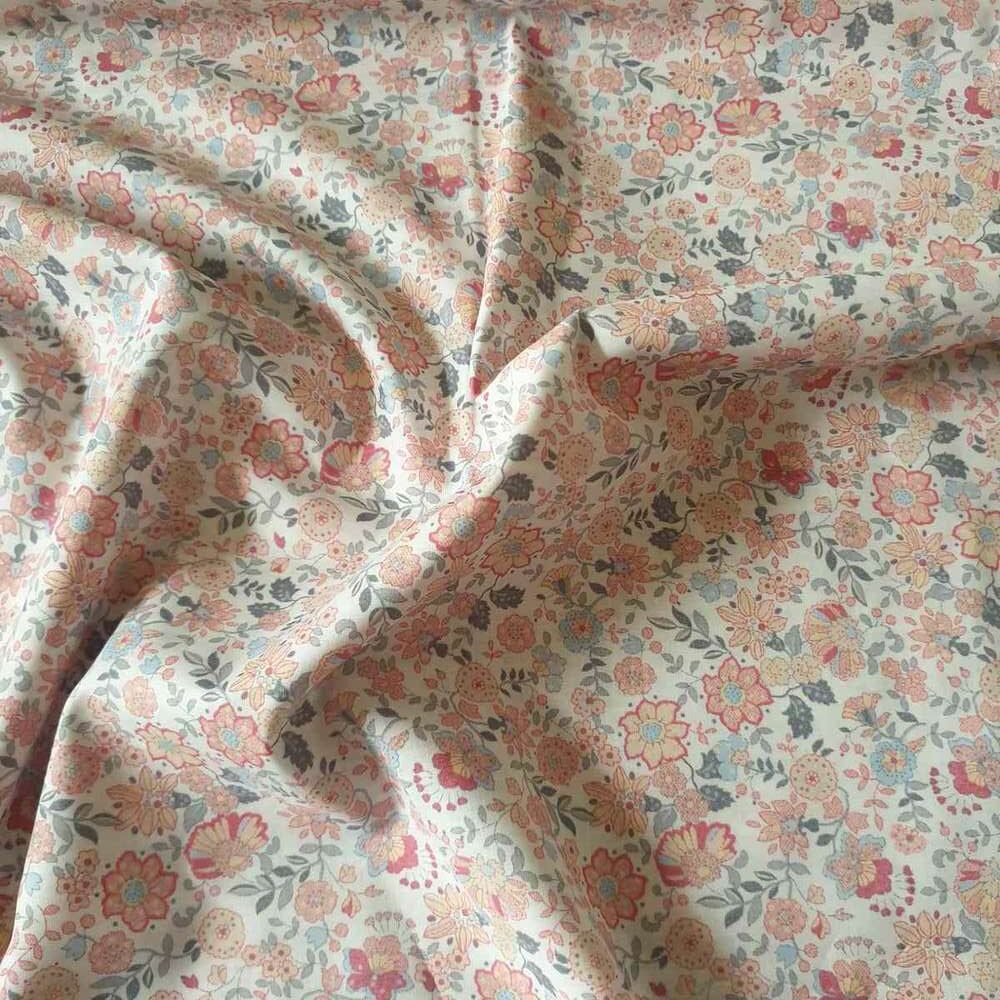 Gots – Voile de coton Fleuri Jaune et corail Réf29