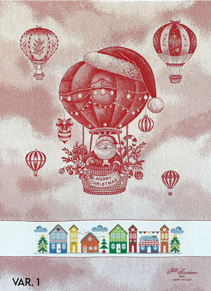 GRAZIANO – Torchon à Broder modèle Mongolfiera coloris rouge