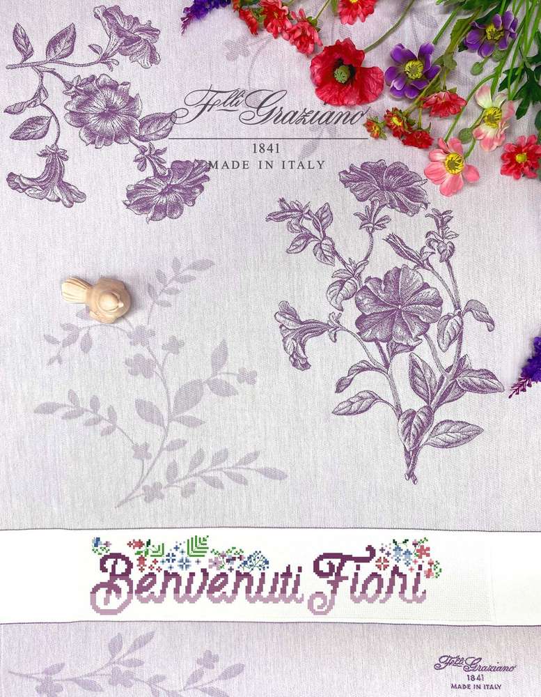 Graziano – Torchon à Broder modèle PETUNIA coloris ROUGE