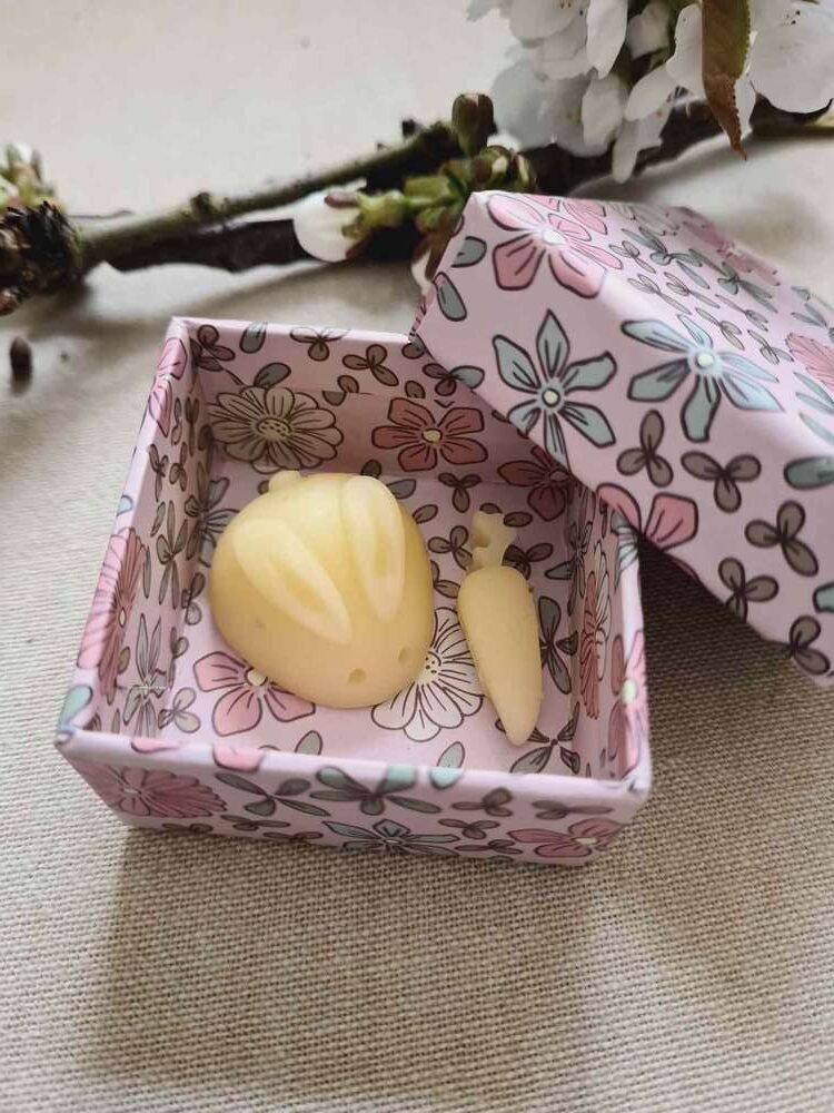 LCF – Boite Fleurie , Lapin Mignon et sa carotte Cire d’abeille