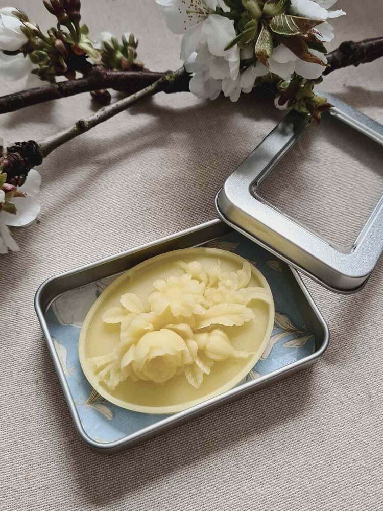 LCF – Boite métal , Fleur de Marguerite Cire d’abeille