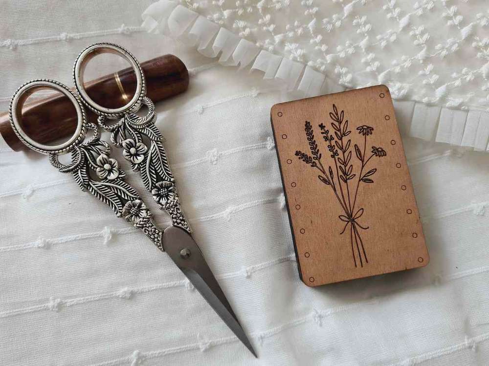 Le petit Atelier Normand – Boite à aiguilles , Bouquet champêtre (Bois de Tigerwood)